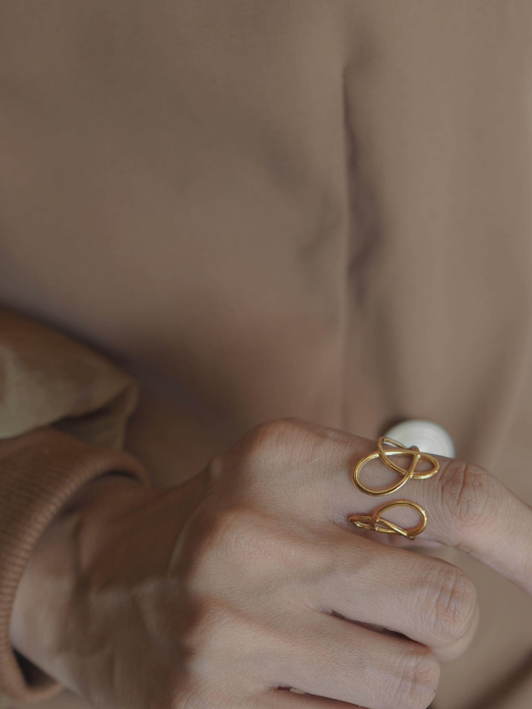 しなやかな曲線が重なり合い、永遠を象徴するループを描くデザインリング。