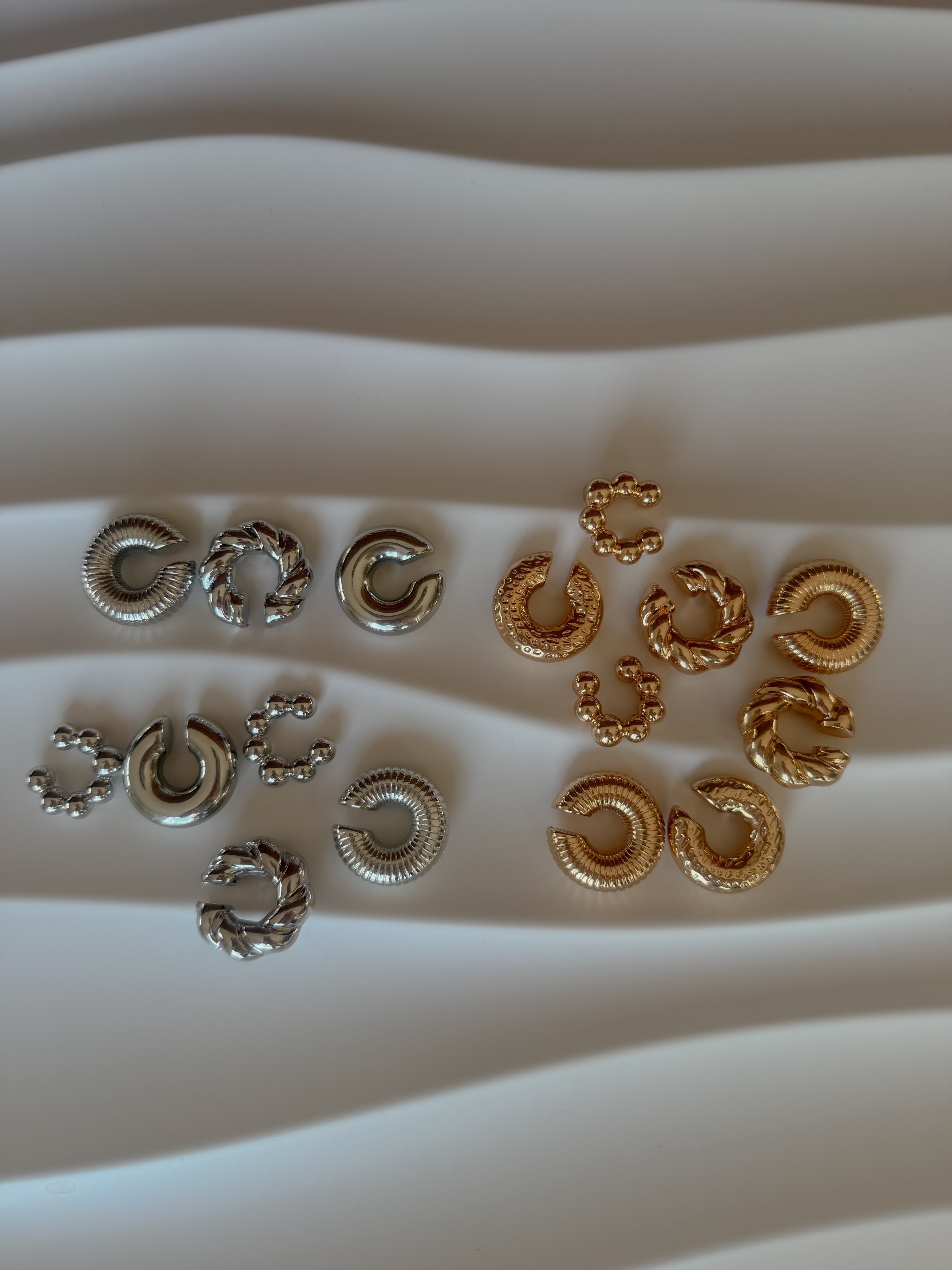 個性の異なる4種類のデザインを楽しめる、贅沢なイヤカフ8個セット。