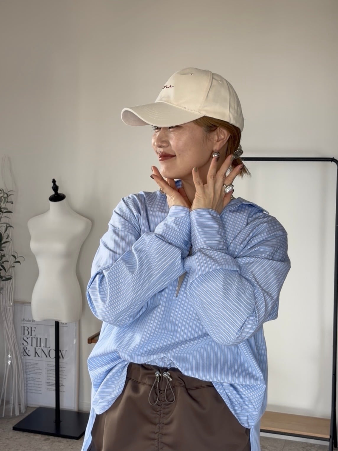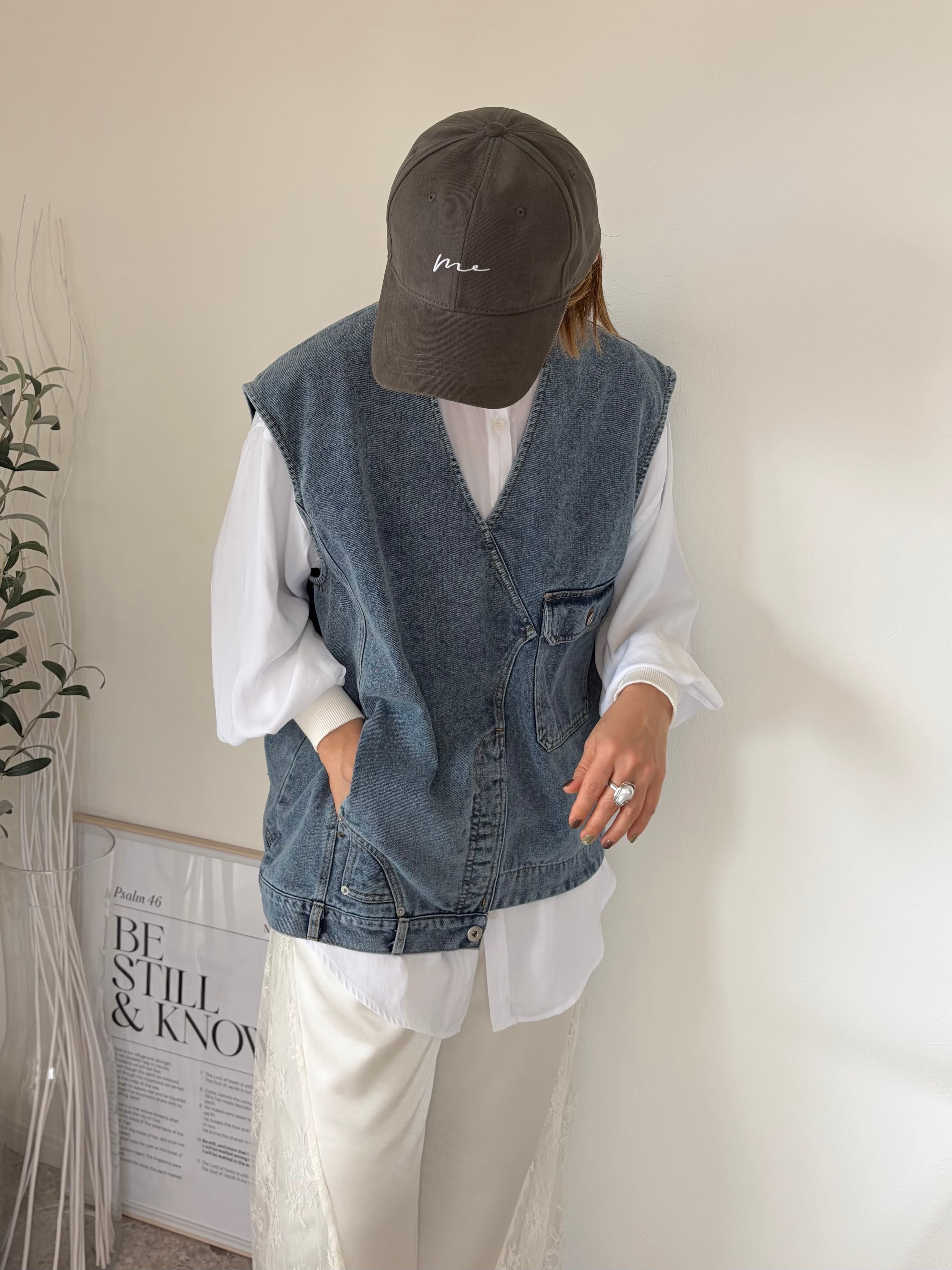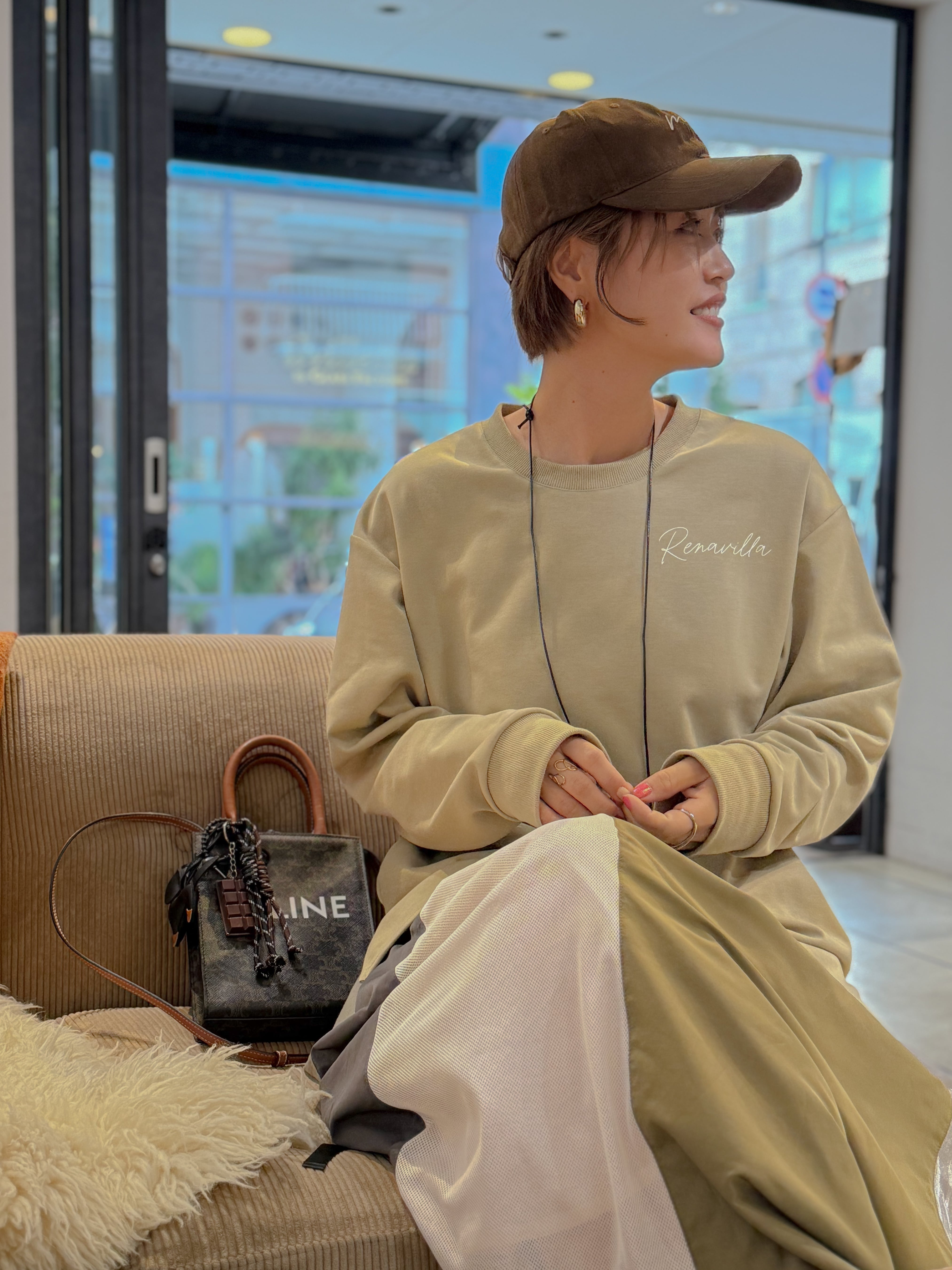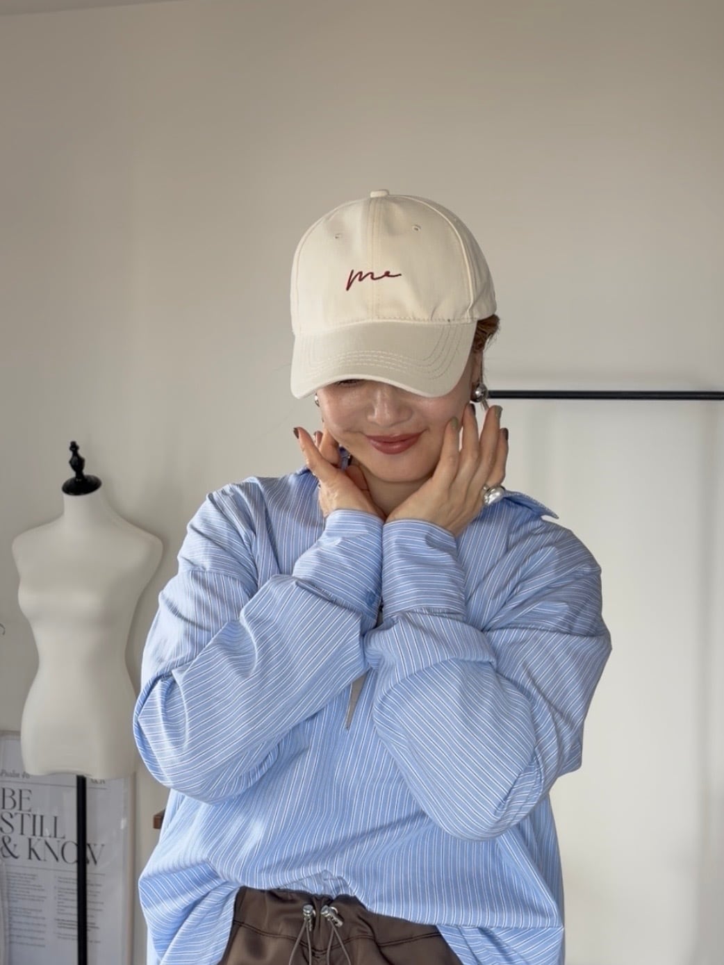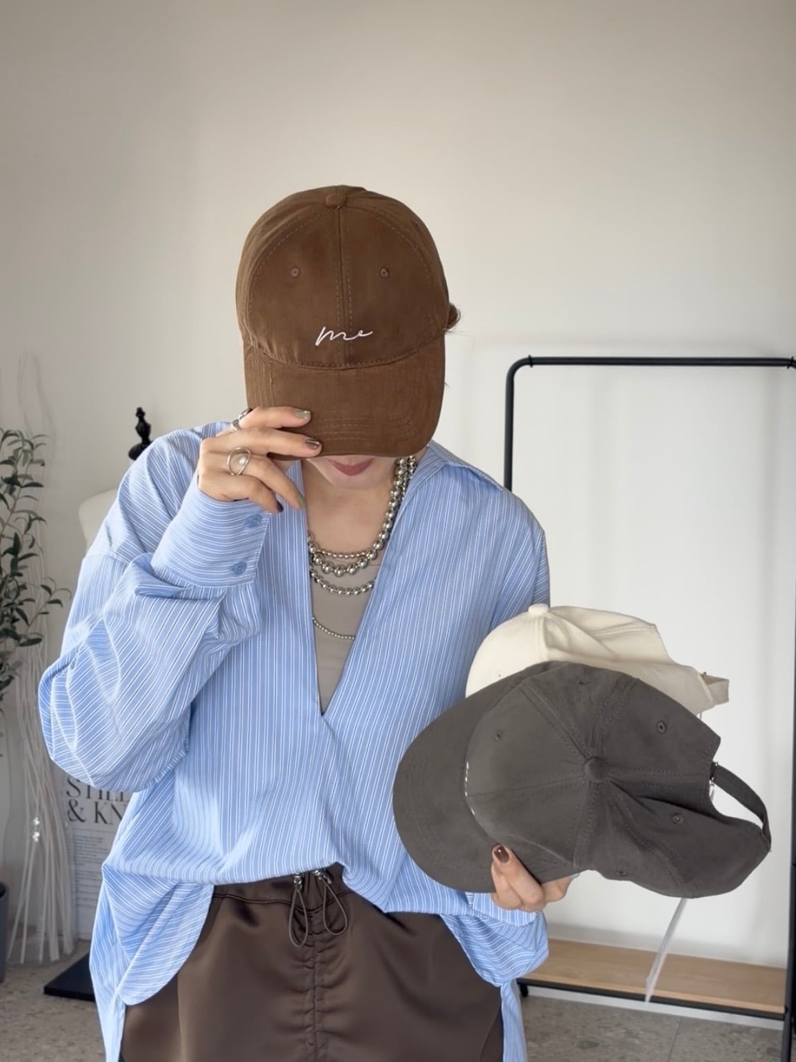 柔らかなスエード調素材に、手書き風の「me」刺繍をのせたシンプルモードなキャップ。落ち着きのあるブラウンカラーは大人カジュアルに馴染みつつ、コーデのアクセントにも◎。後ろのメタルパーツがさりげない高級感を添え、ユニセックスで使える万能アイテムです。