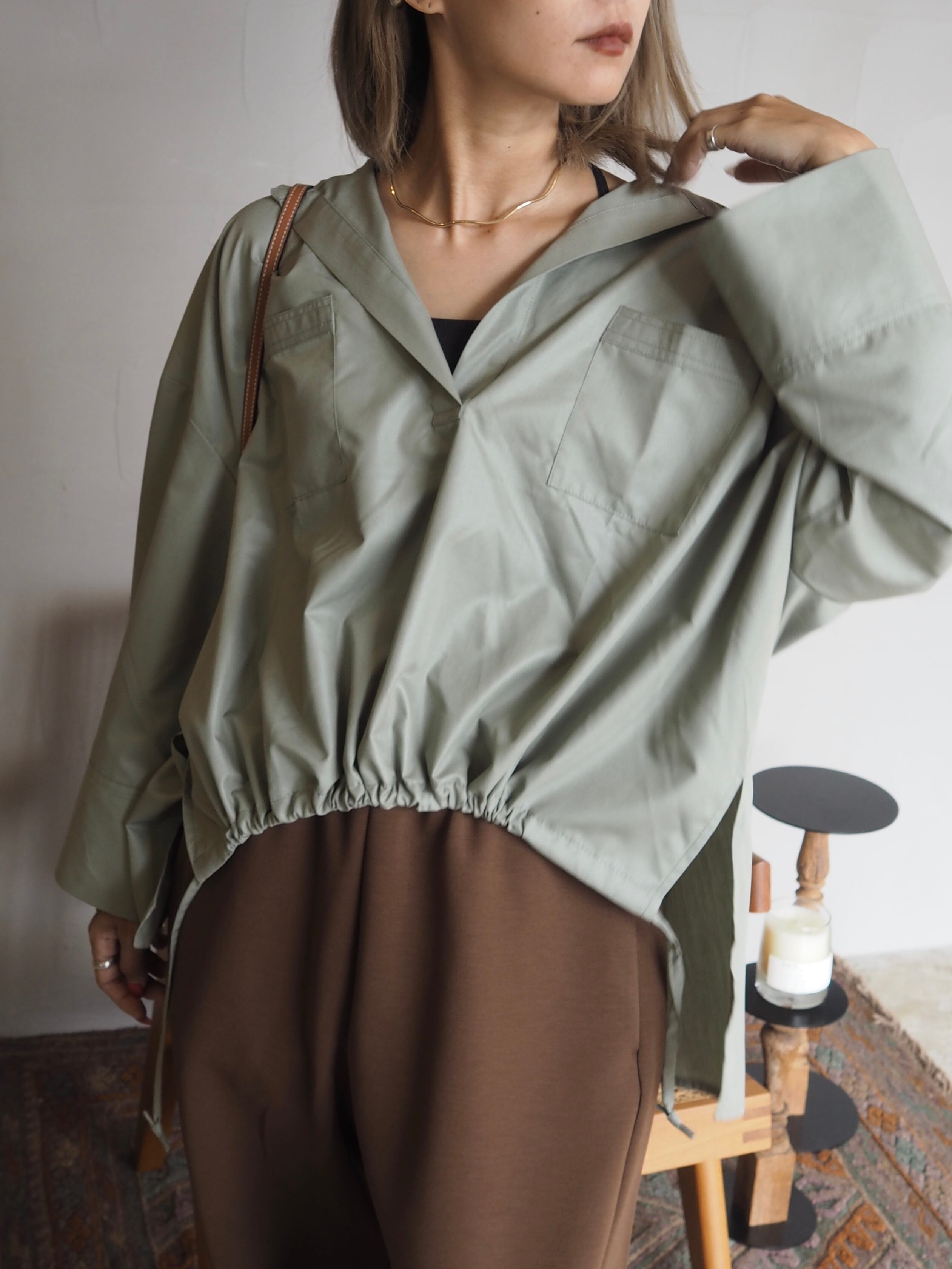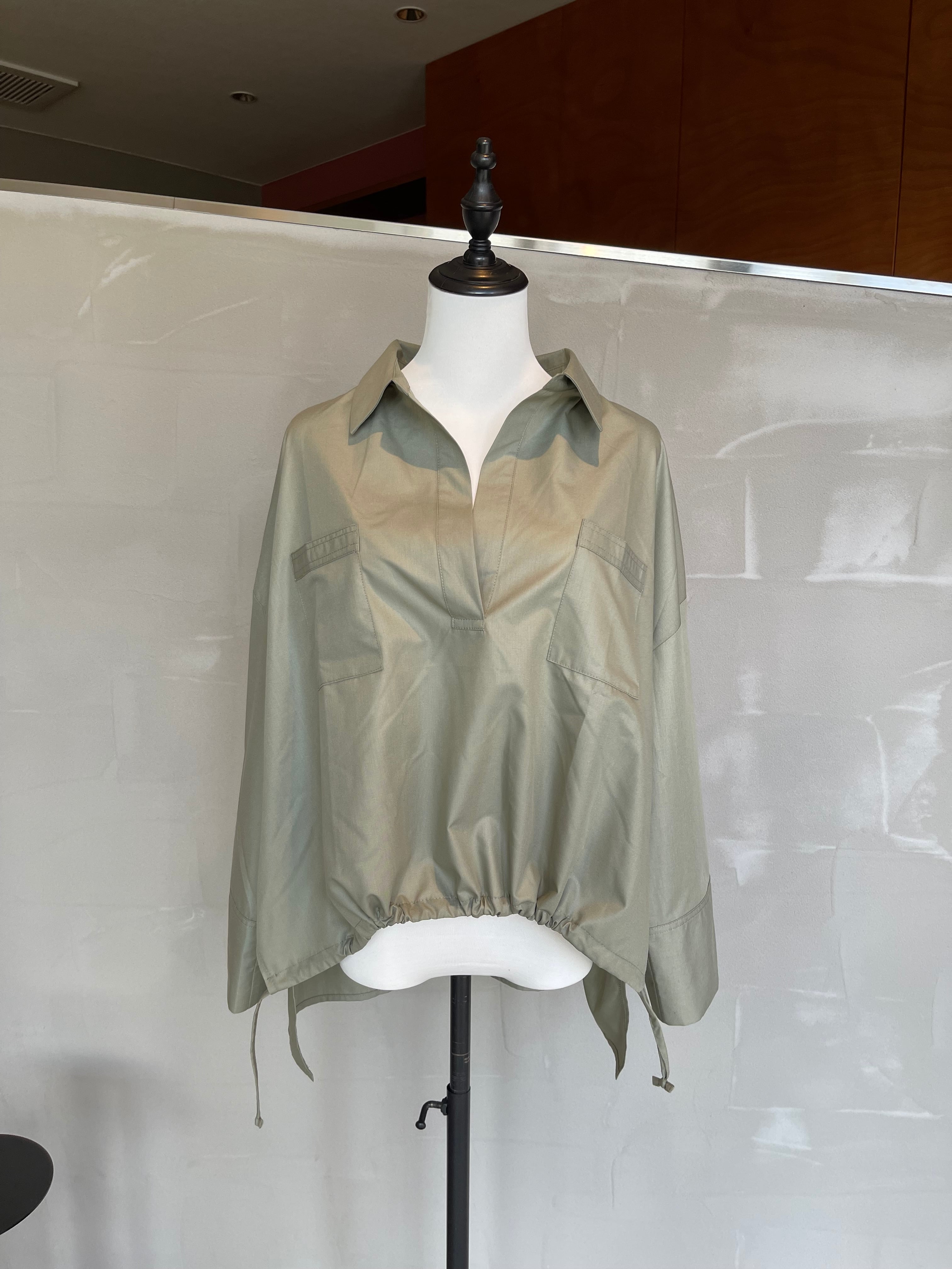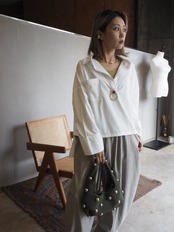 ゆったりとしたシルエットに、抜け感のある襟元と裾はお好みで絞れるドロストデザインを効かせたモードシャツ。ドロスト仕様は絞れば立体感のあるシルエットに。リラックスした着心地ながらもスタイリング次第でクリーンにもモードにも使える万能アイテム。パンツにもスカートにも相性抜群で、タートルやロンTなどレイヤードにも◎シーズンレスに活躍します。