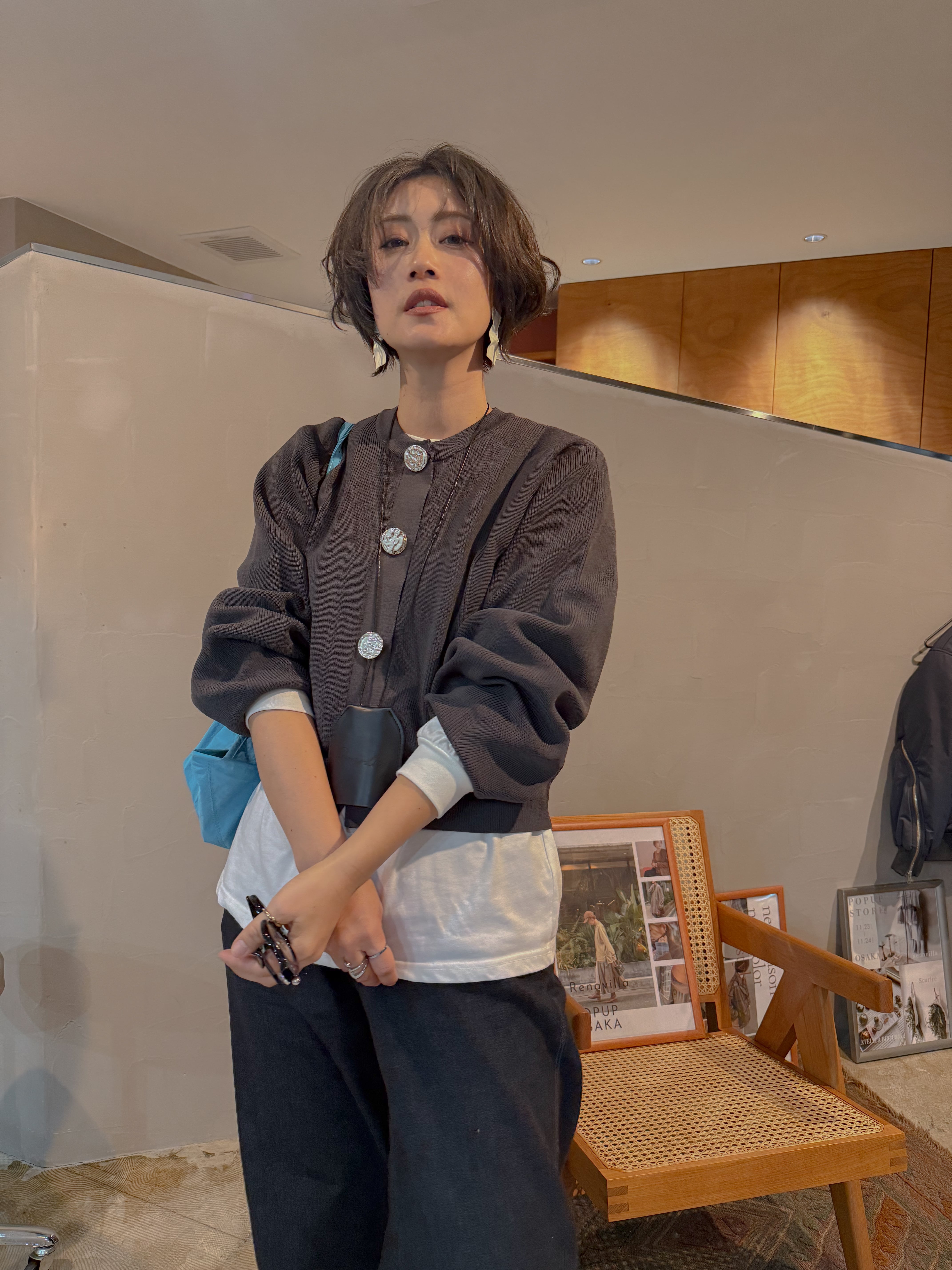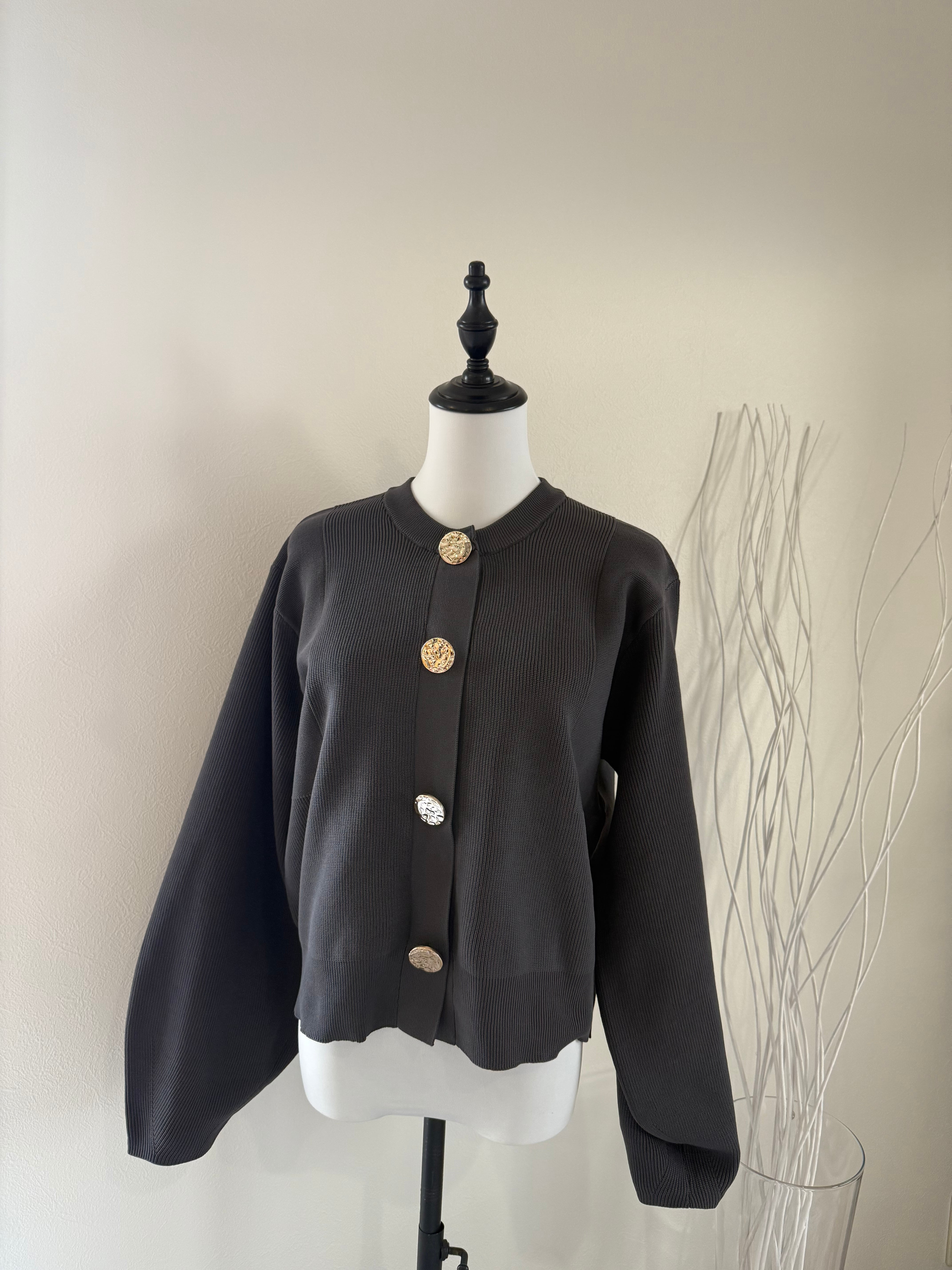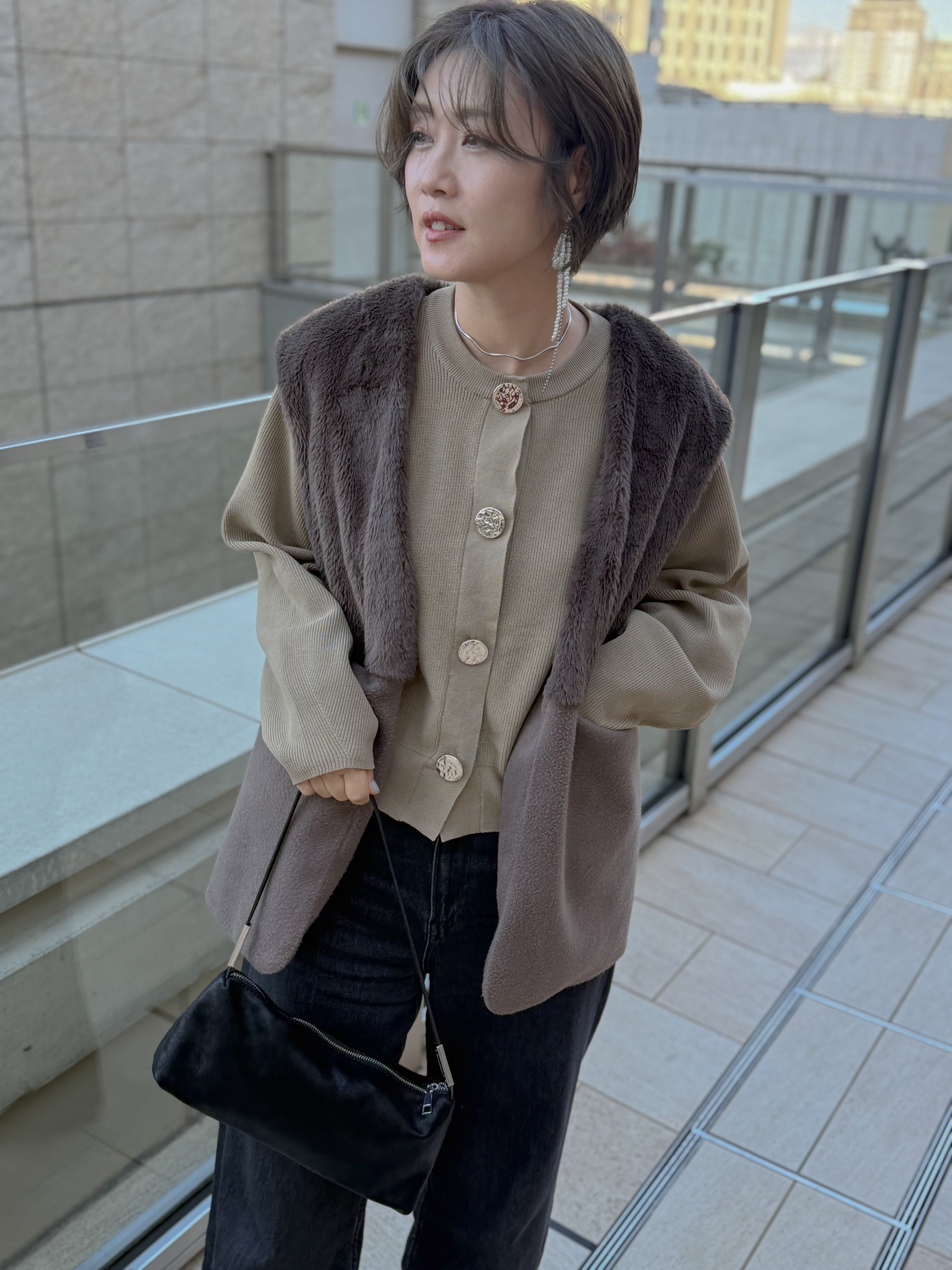 ビッグボタンが主役の、“高見えニットカーディガン”。