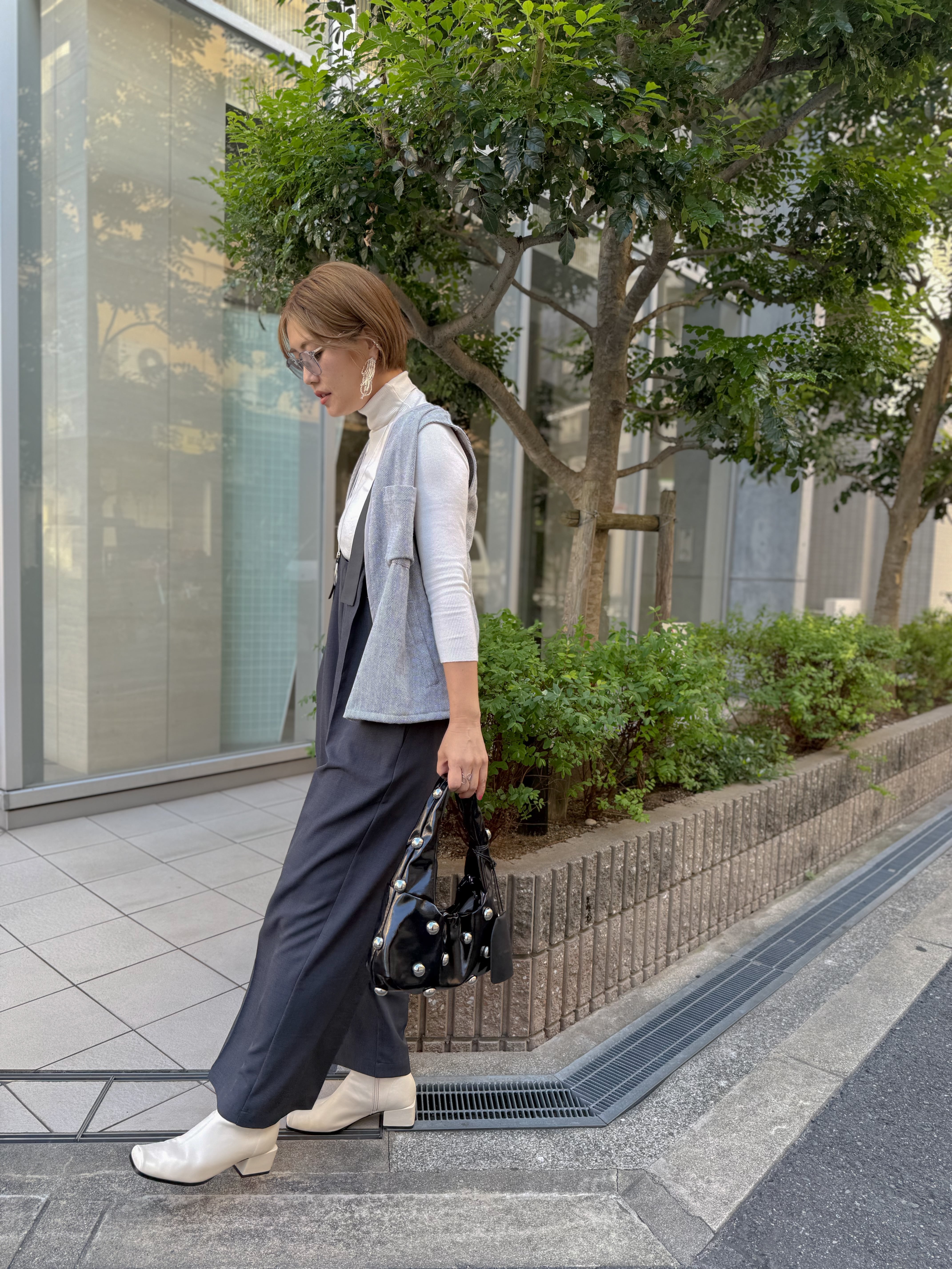 上半身をすっきり見せ、ワイドシルエットが縦を強調してスタイルアップ。