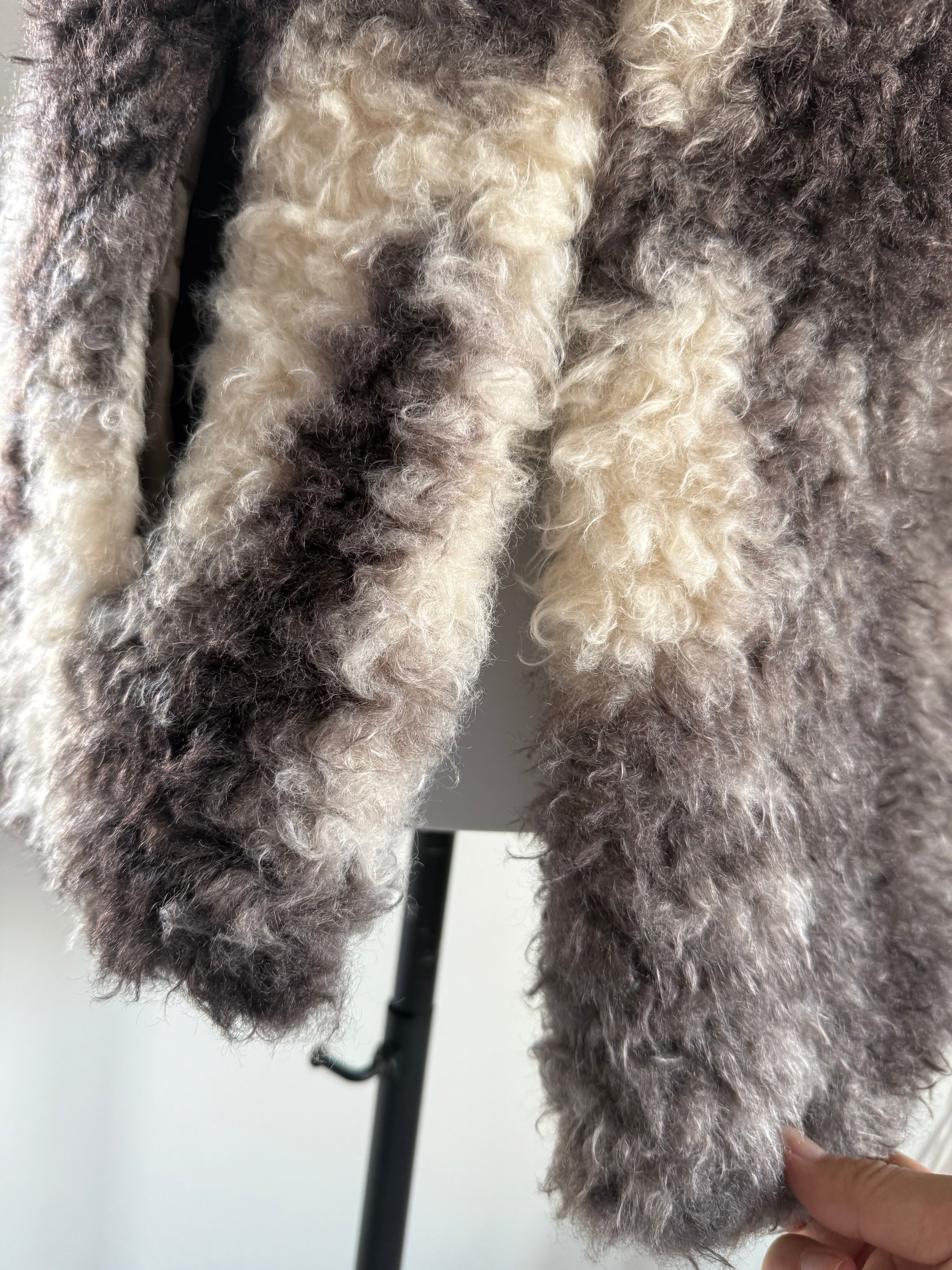 くるくるとしたカールファーがふんわりと空気を含み、軽いのにしっかり暖かい着心地。