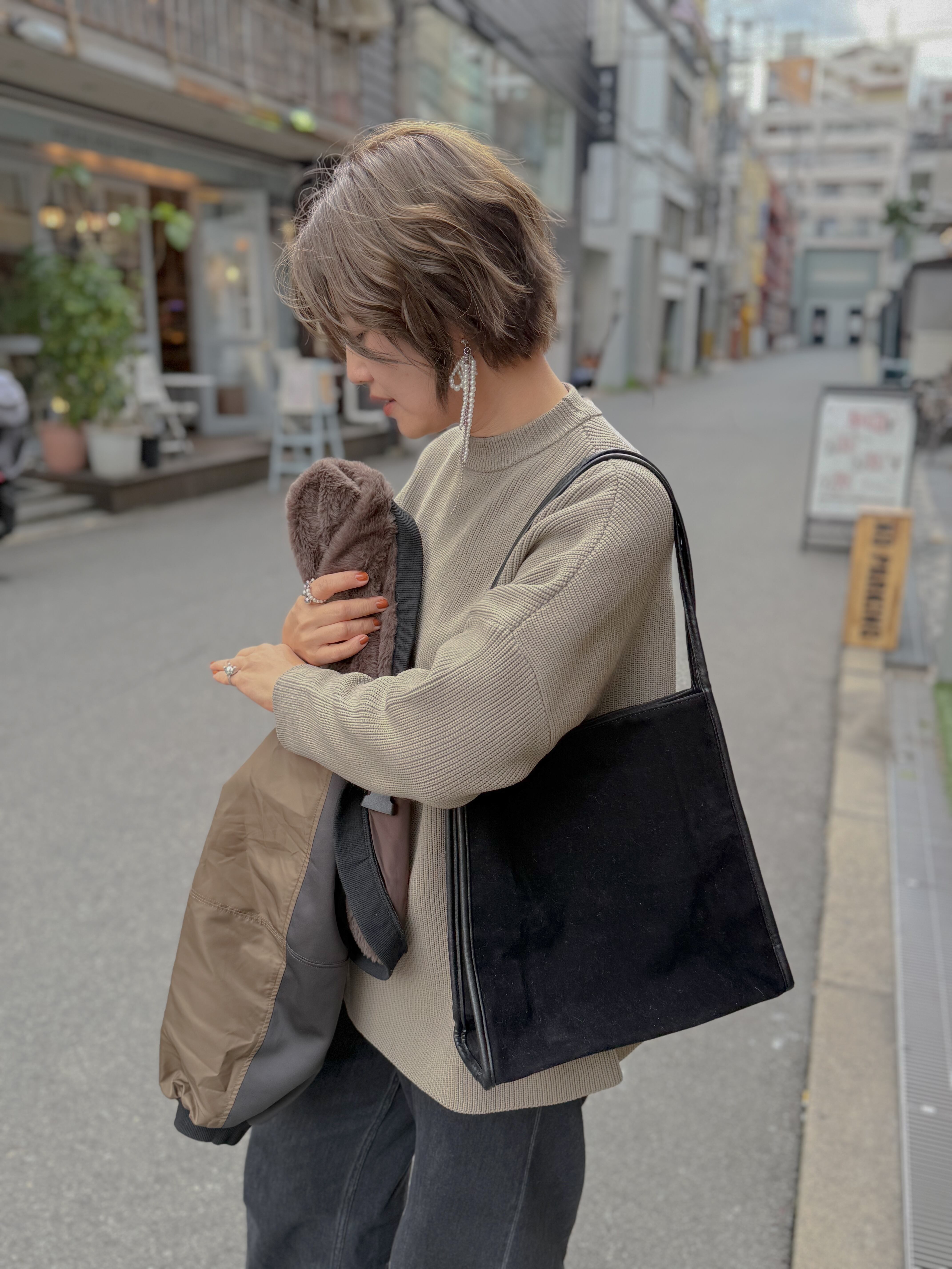 シンプルなのにおしゃれが際立つ、冬のスタイリングに寄り添うマストバッグです。