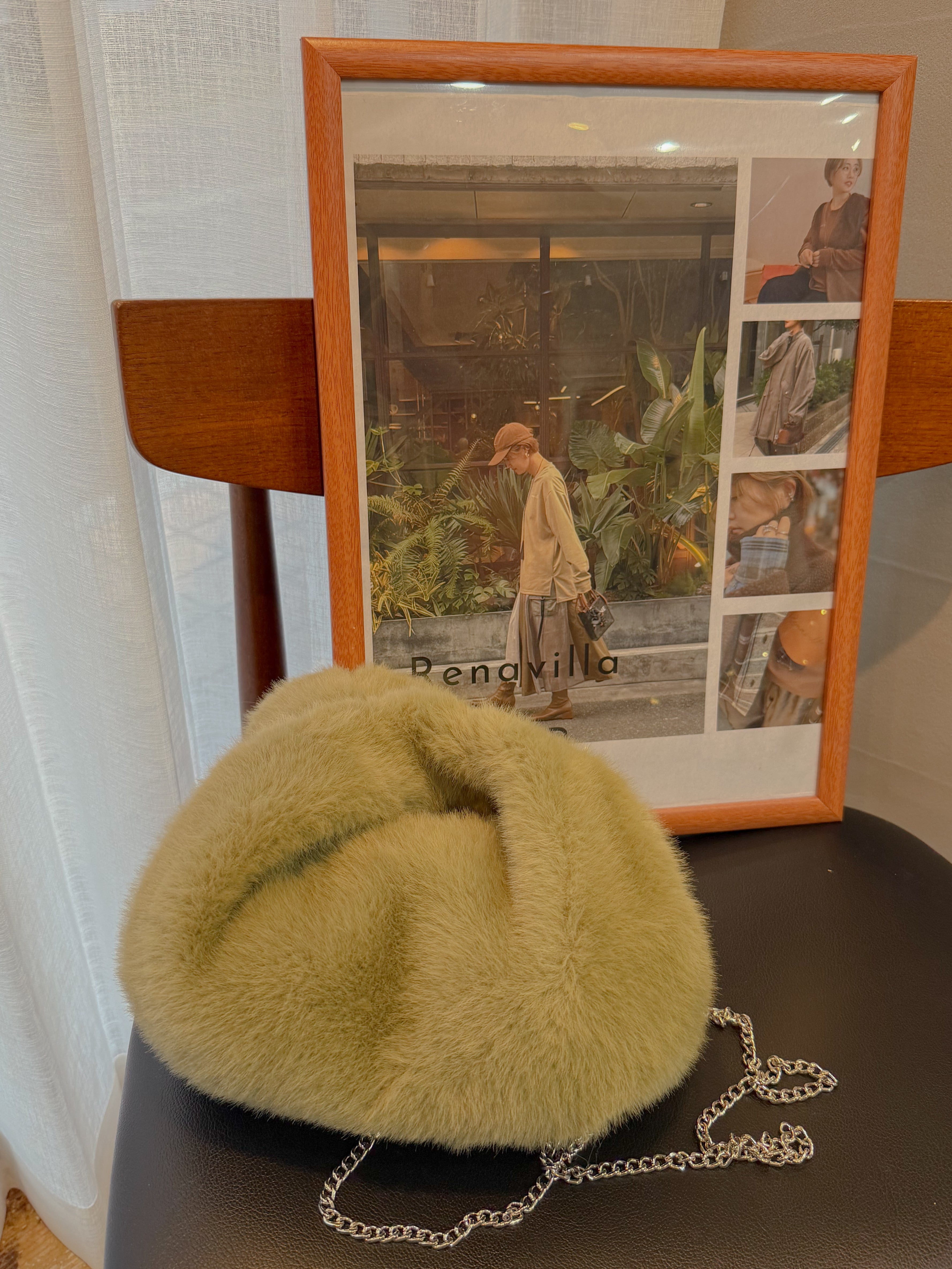 【 Renavilla レナヴィラ 】グリーンファーボールチェーンバッグ