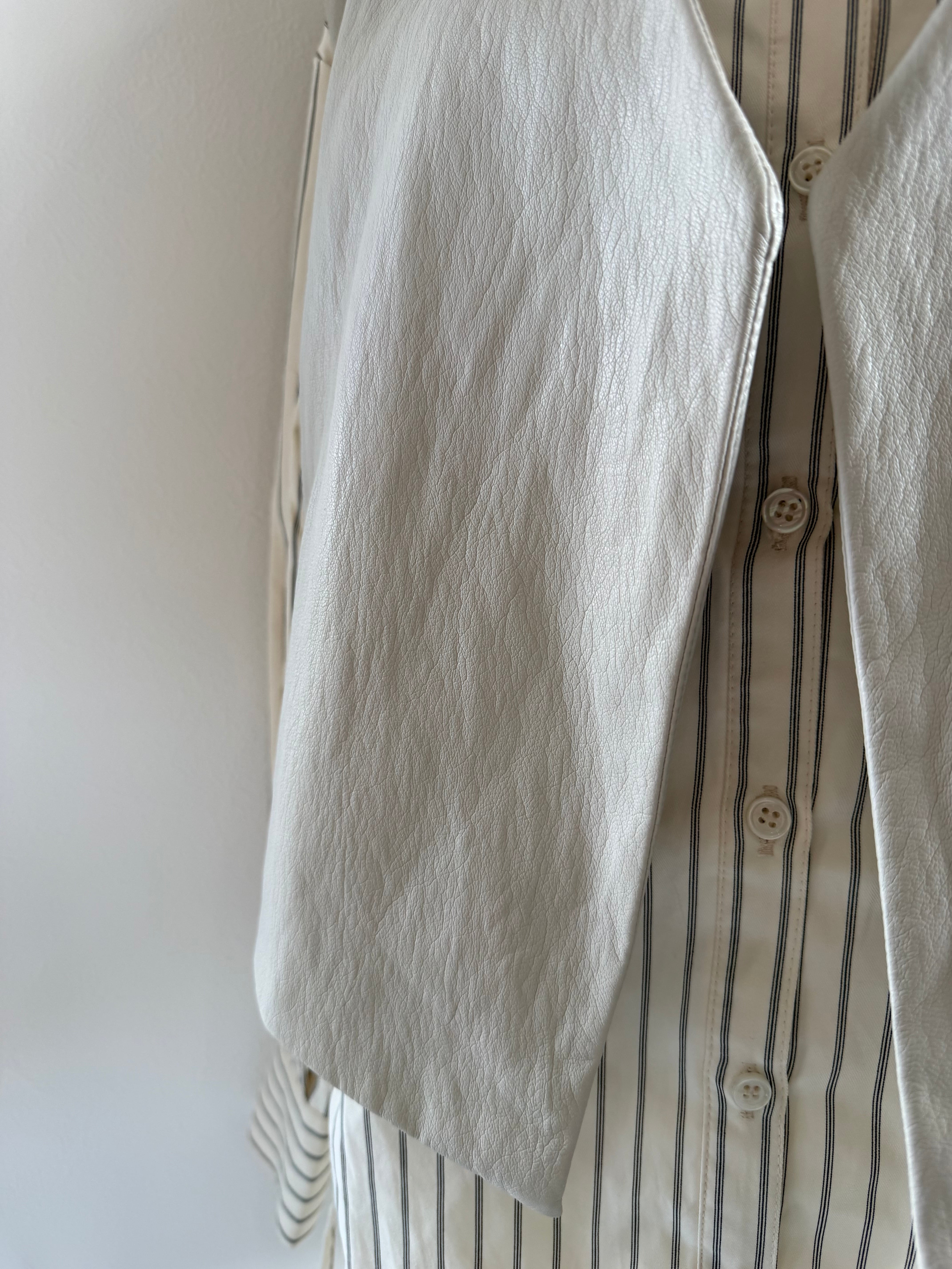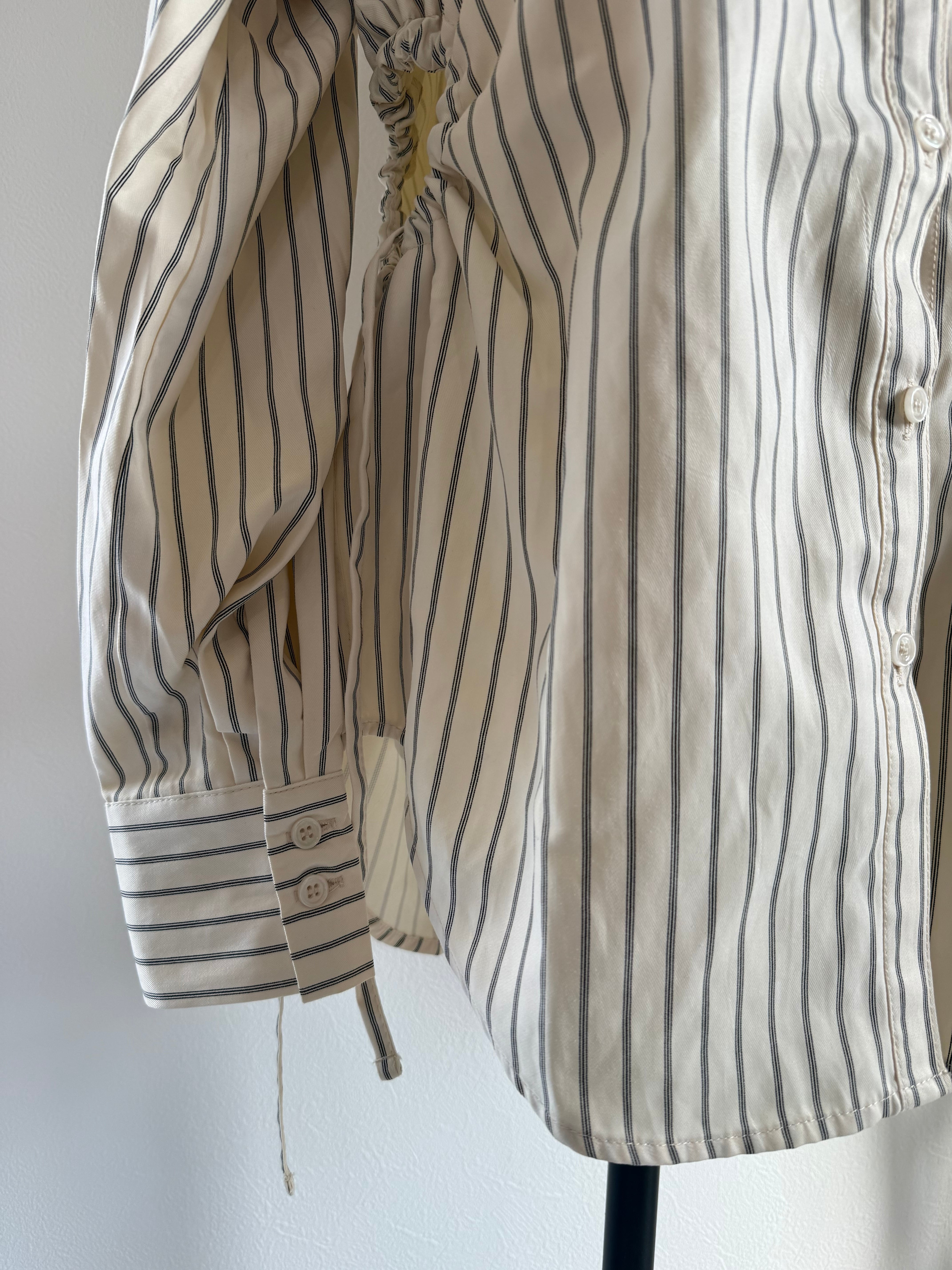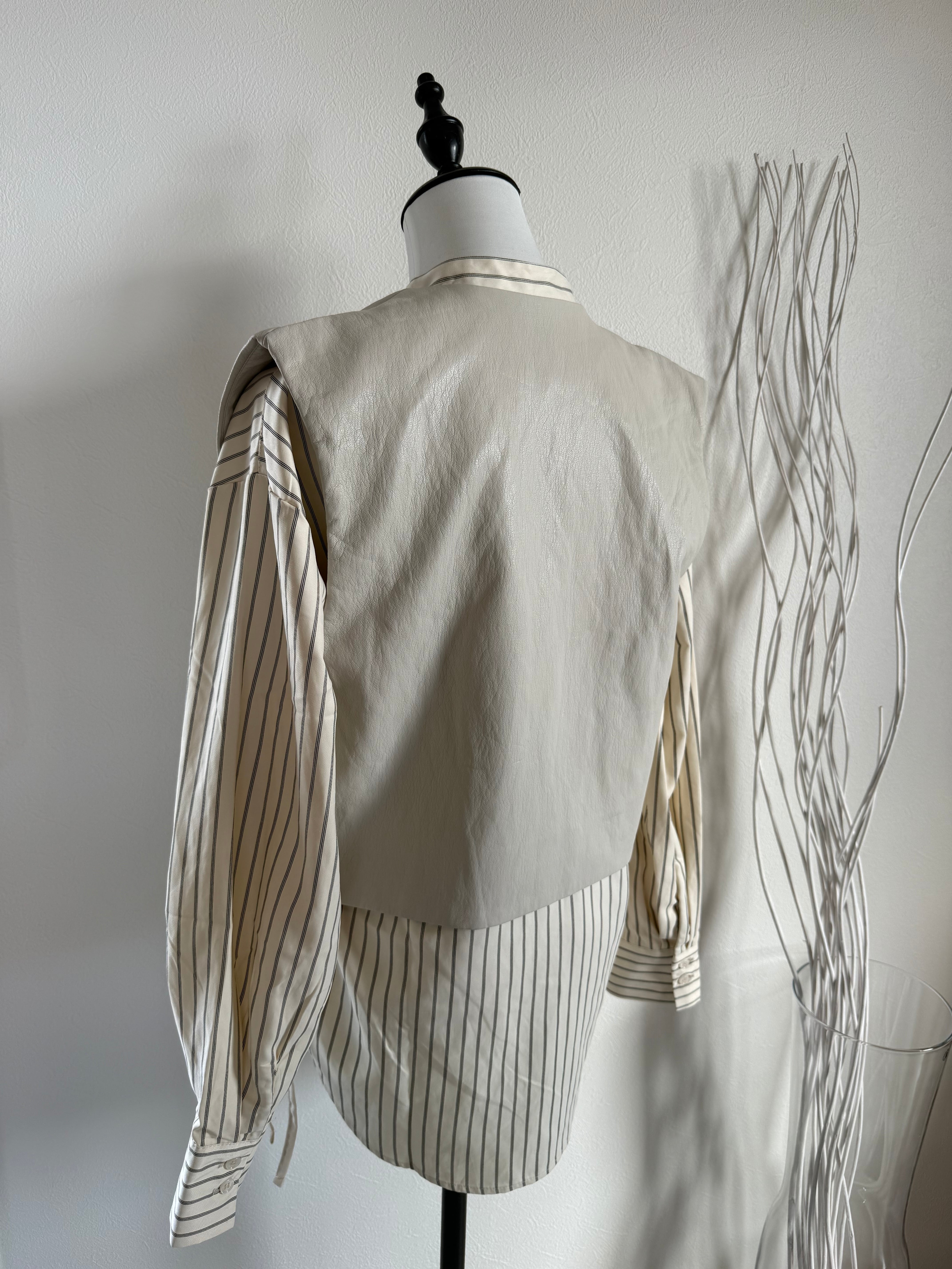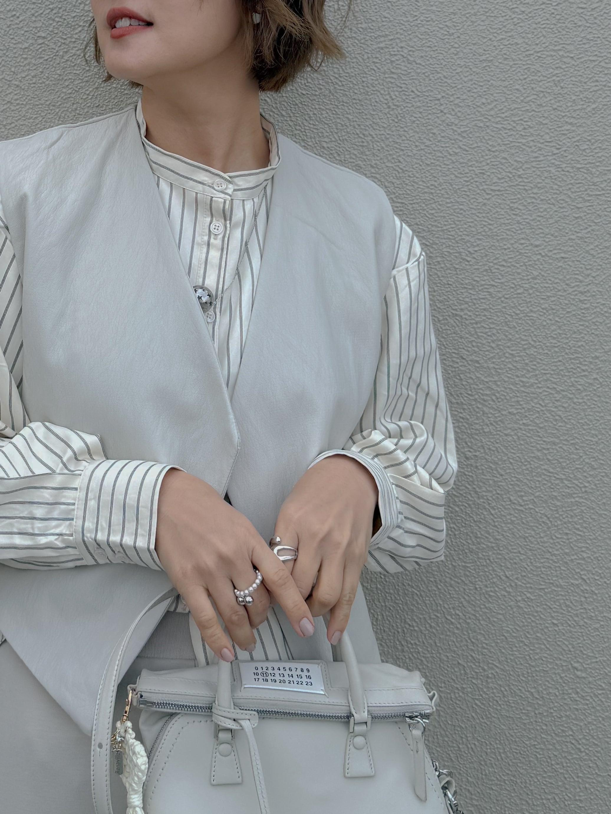立体シルエットのストライプブラウスを組み合わせたRenavillaならではのレイヤードセット。