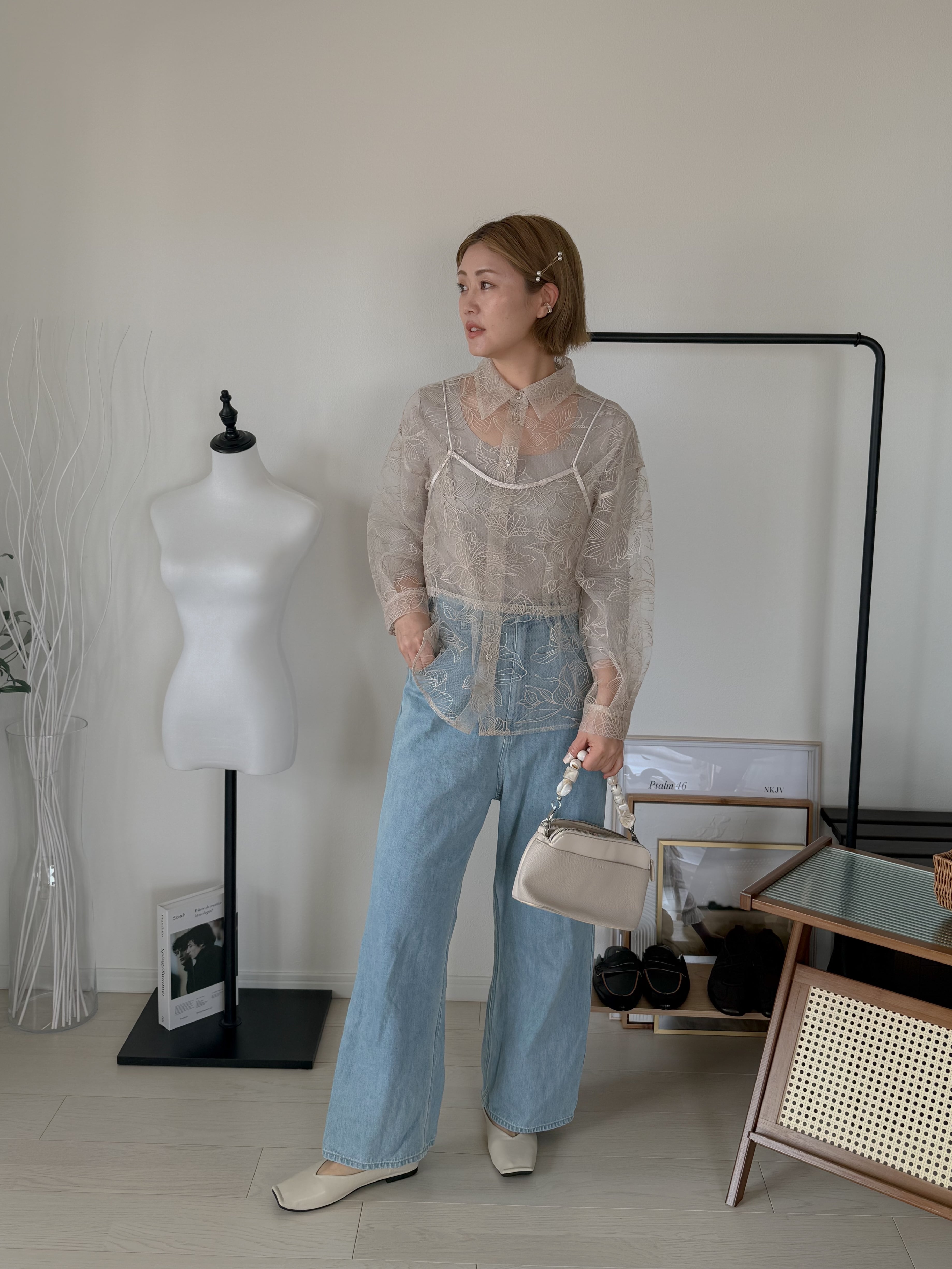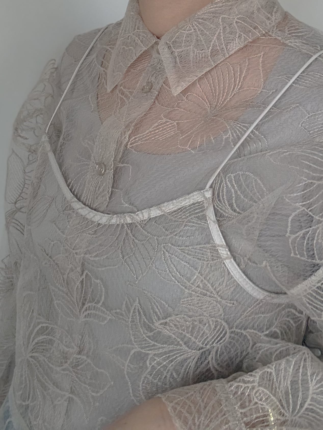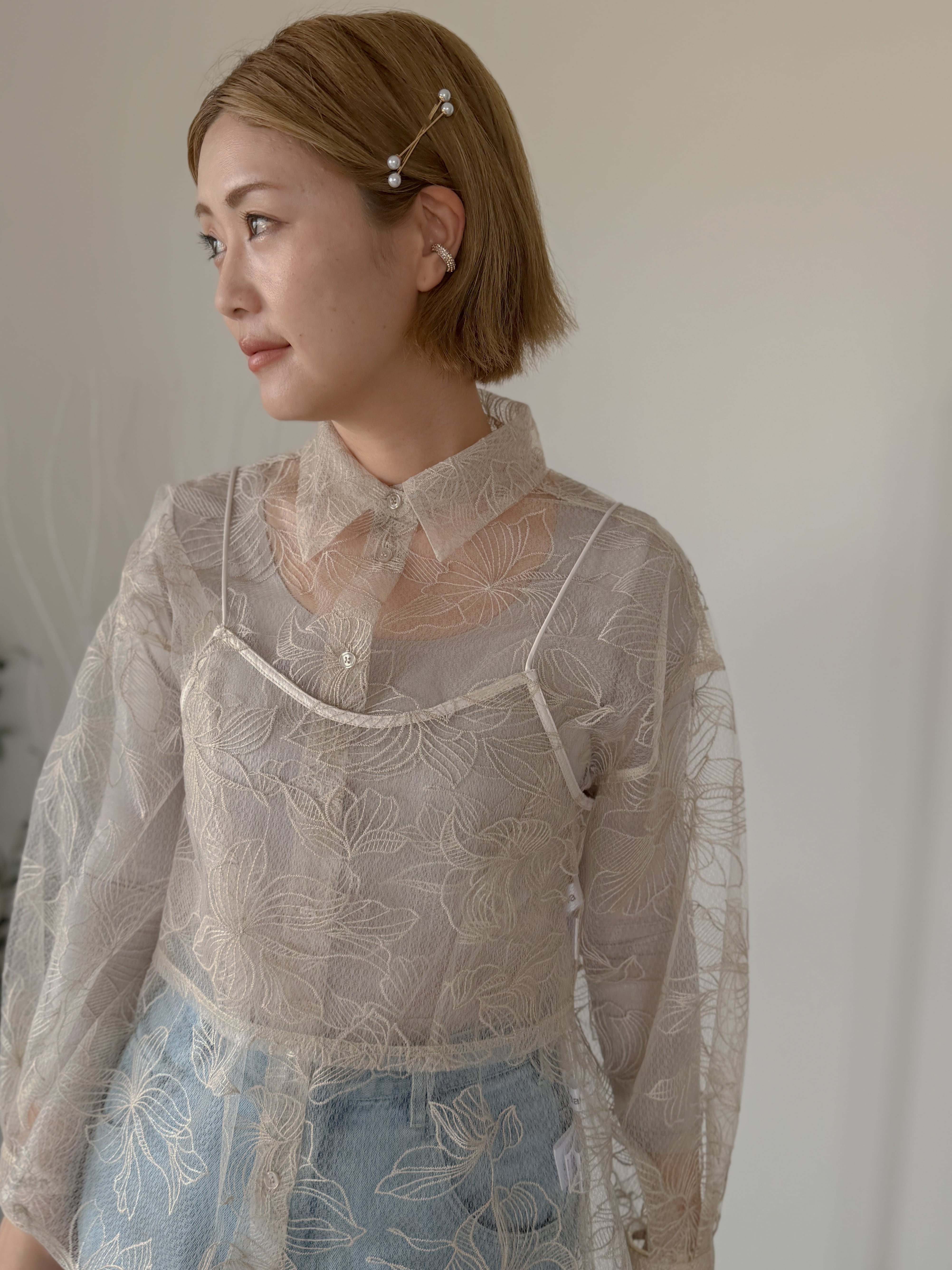 ネックレス付き花柄シアーレースビスチェ&ブラウスレイヤードセット