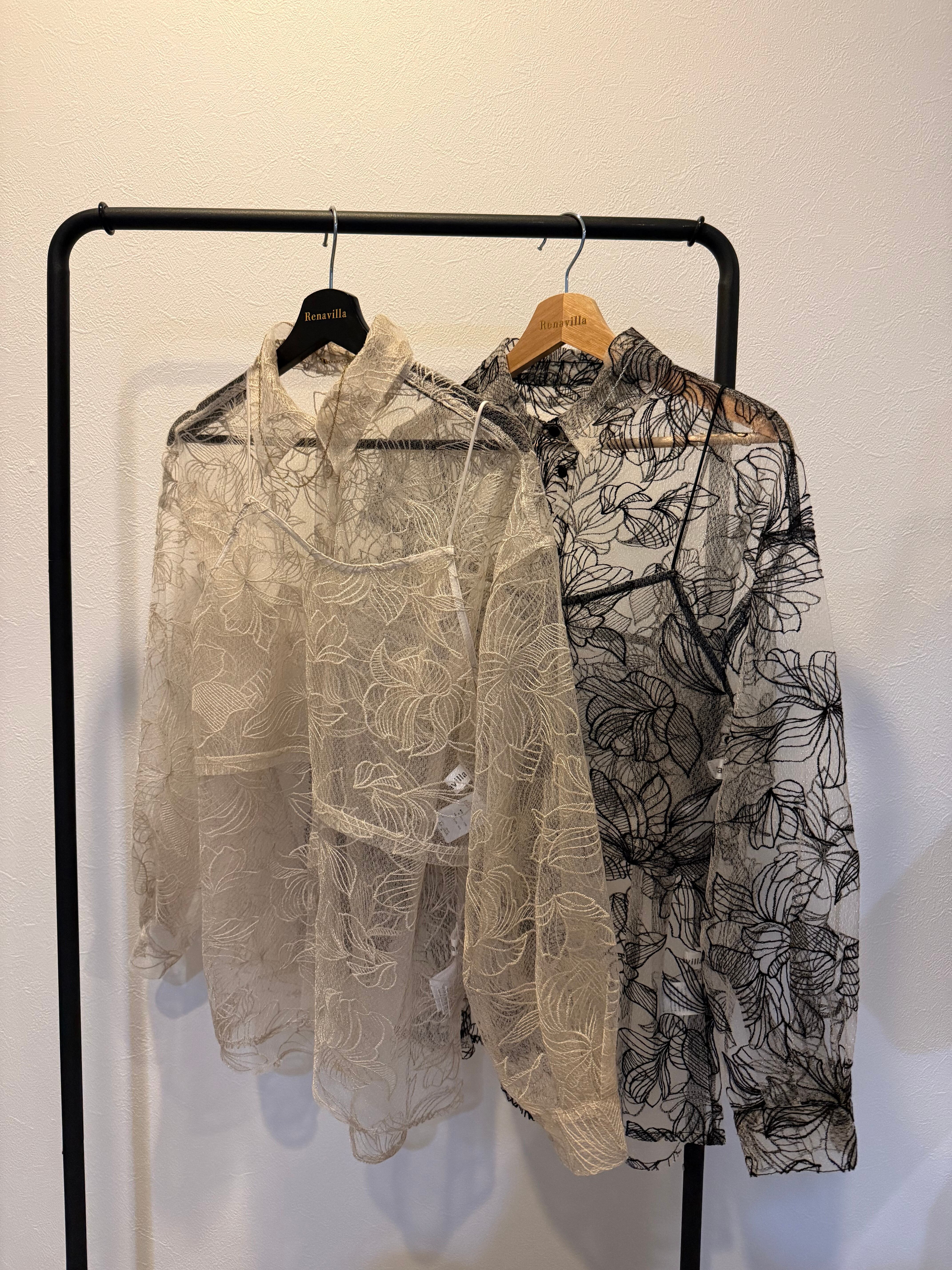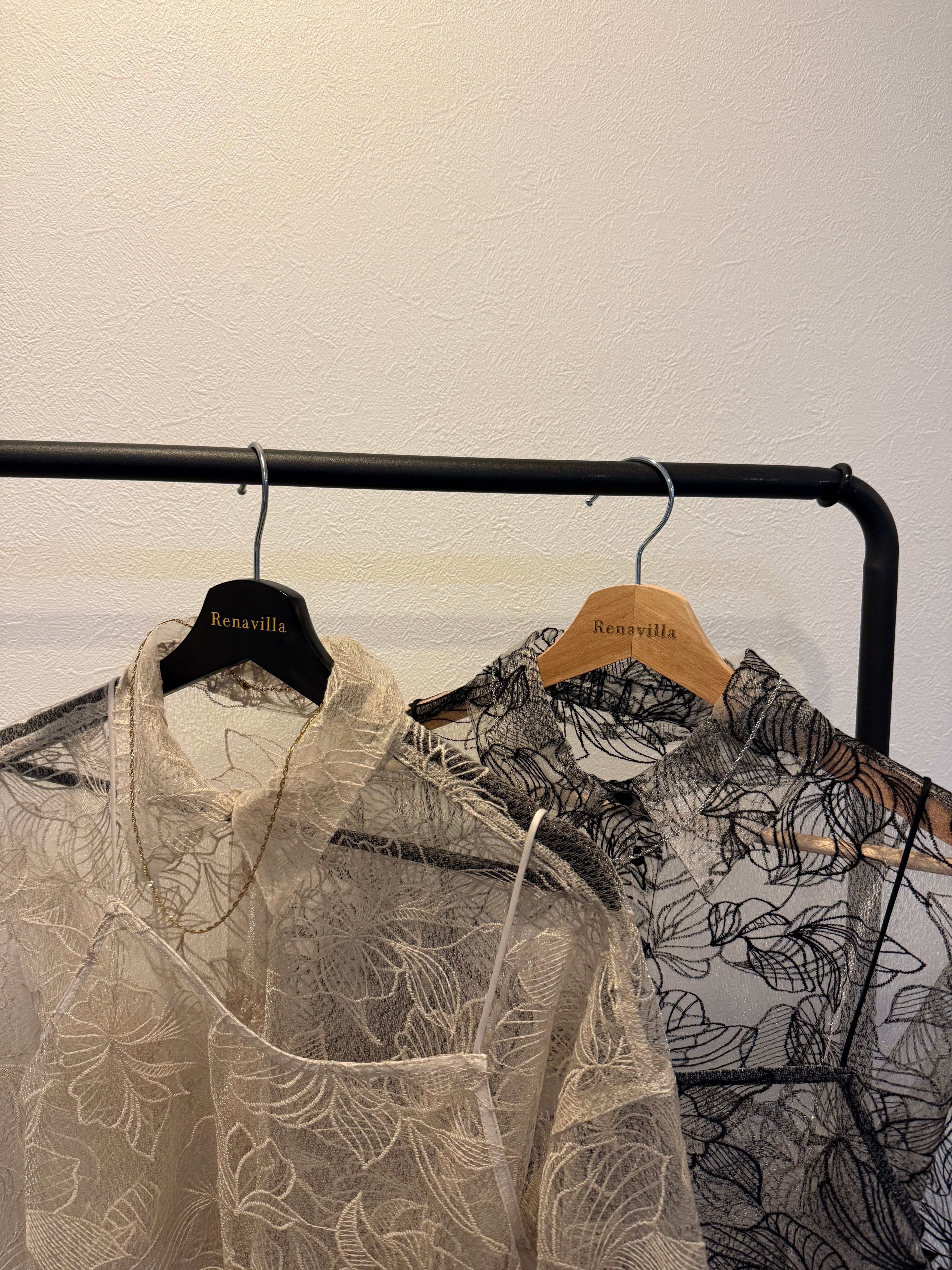 【 Renavilla レナヴィラ 】ネックレス付き花柄シアーレースビスチェ&ブラウスレイヤードセット