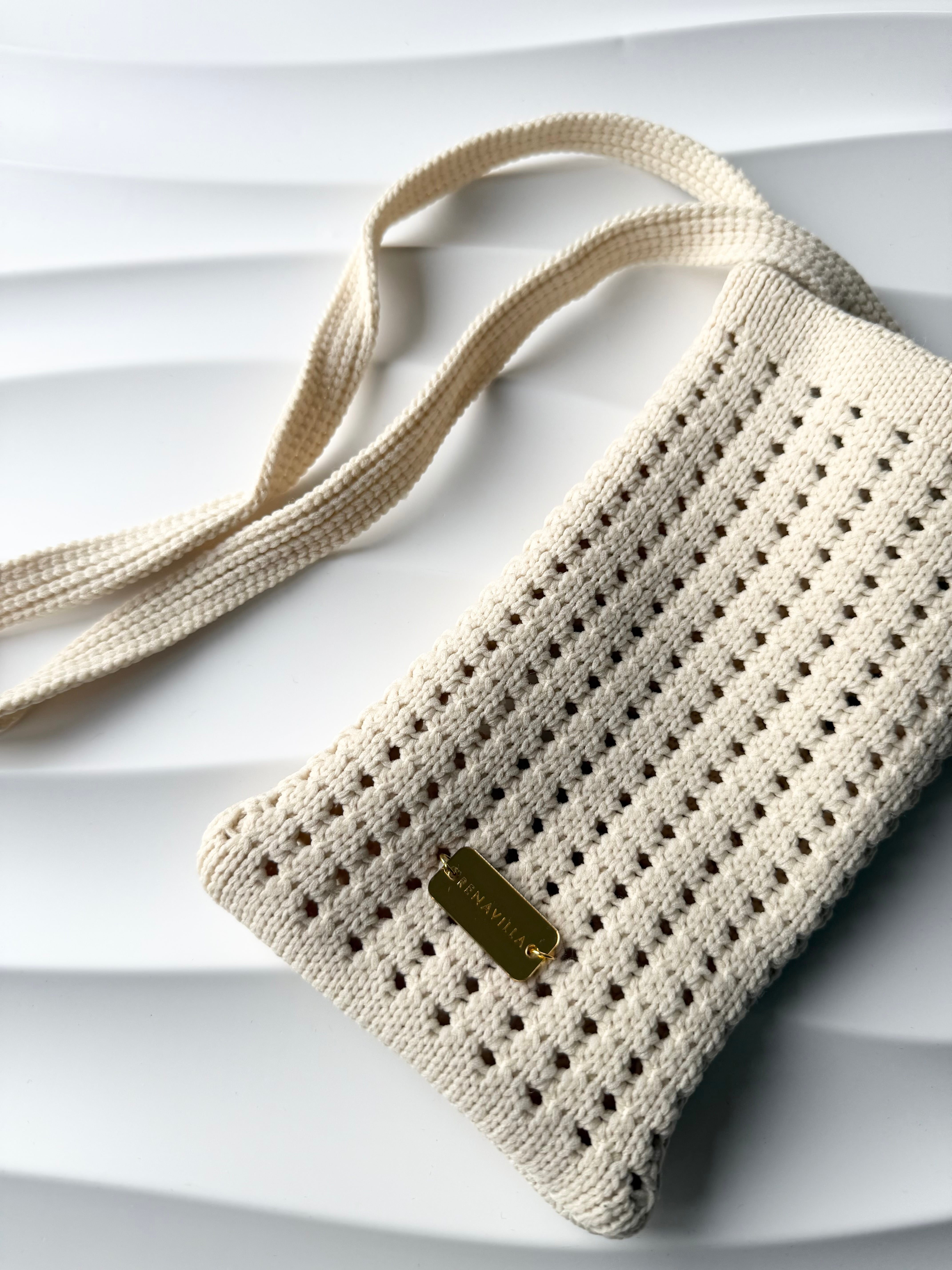 ざっくり編みの透かしニットが、コーデに“余白の美しさ”をプラスしてくれるショルダーバッグ。